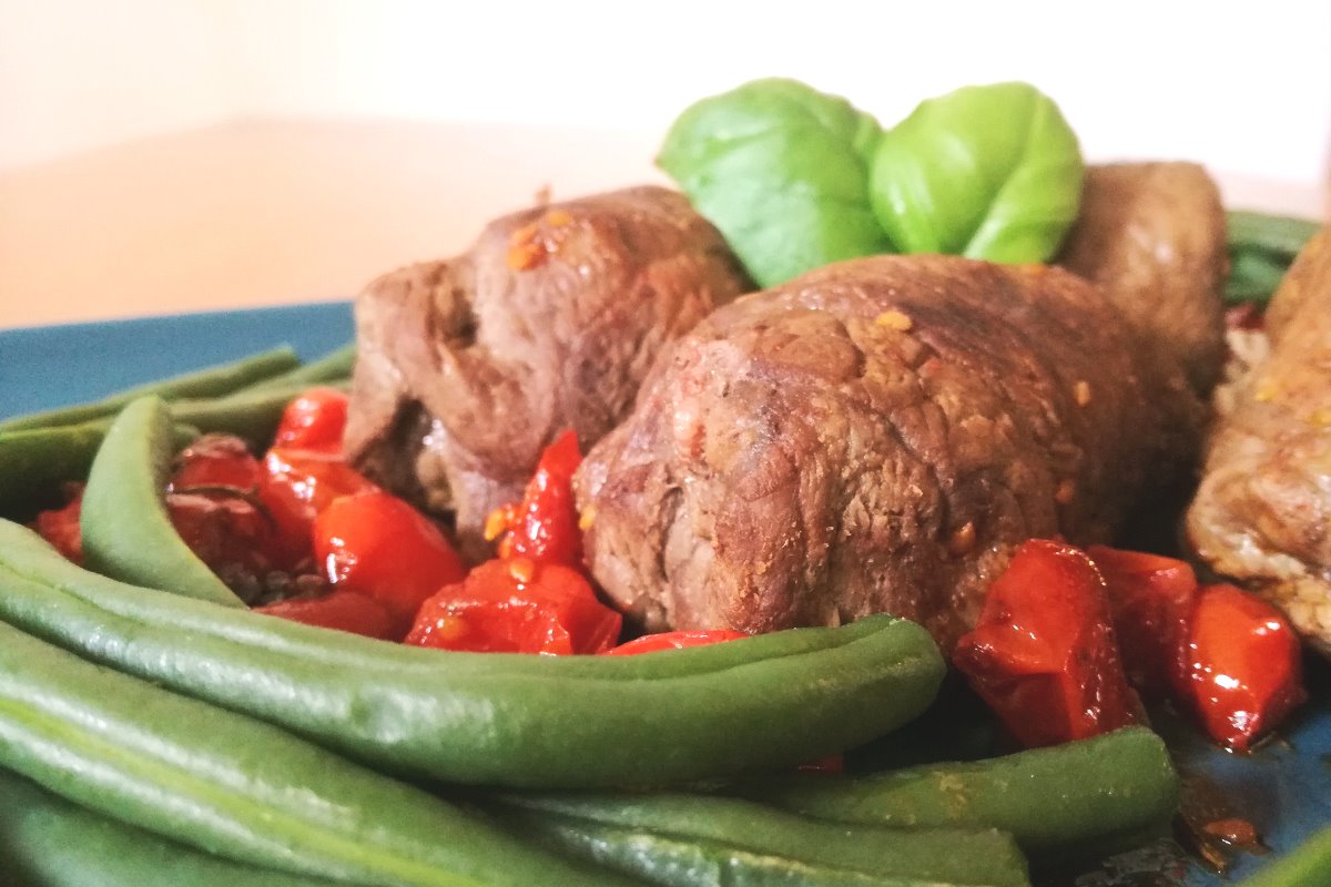 Gustosi e semplici da preparare, gli involtini di carne sono una soluzione pratica anche per realizzare un piatto unico che possa fare da schiscetta. Suggeriamo un ripieno con una verdura di stagione all’inizio dell’estate, i fagiolini, ai quali aggiungeremo speck e formaggio grattugiato. Completeremo poi con dei pomodori datterino e del basilico fresco.