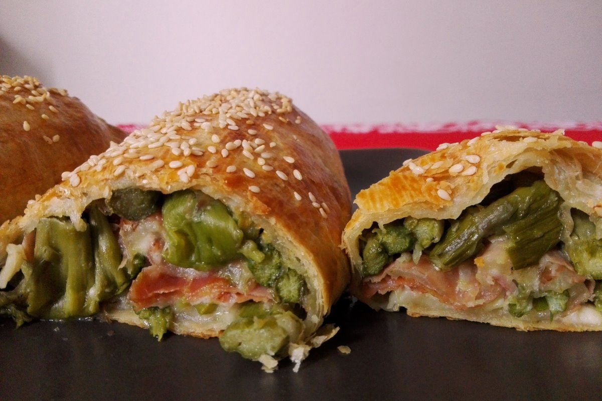 Aprile è il mese degli asparagi, ora disponibili freschi tra le verdure di stagione. Qui andremo a utilizzarli in una ricetta facile e saporita, abbinandoli a mozzarella e speck e avvolgendoli nella pasta sfoglia. Un piatto unico utilizzabile anche come schiscetta, perché si conserva bene in frigorifero per un paio di giorni.