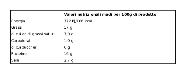 componente | Valori nutrizionali medi per 100g di prodotto |