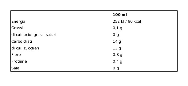 Acqua, Purea di albicocca* (40%) (albicocche*, antiossidante: acido ascorbico), Zucchero di canna*, *Biologico