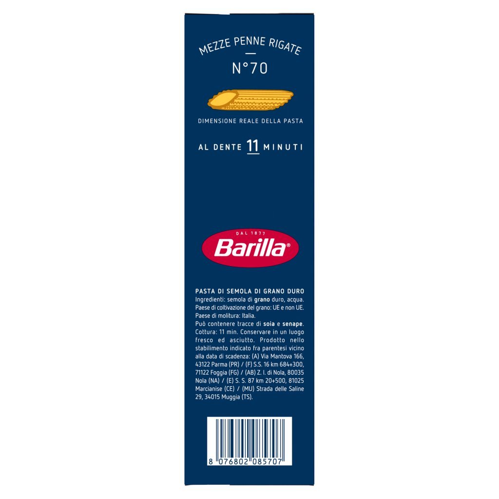 Semola di grano duro, Acqua, Può contenere tracce di soia e senape