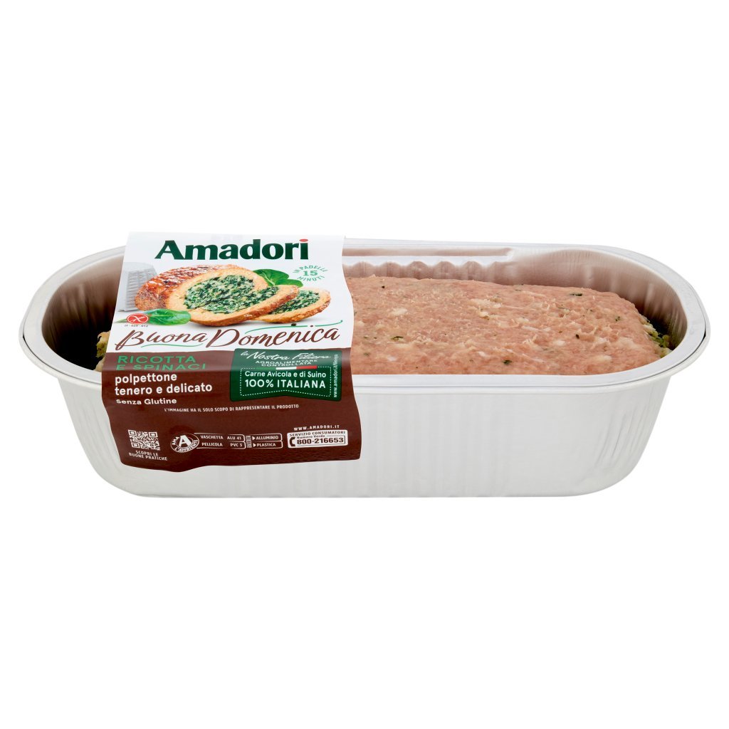 Carne di tacchino e pollo 52%, Acqua, Spinaci 13%, Carne di suino 10%, Ricotta (siero di latte, crema di latte, sale) 3,8%, Amido di patata, Sale iodato (sale, iodato di potassio 0,007%), Fiocchi di patate, Fibre vegetali (limone, lime, bambù, patata), Prezzemolo, Latte scremato in polvere, Uovo disidratato, Estratto di lievito, Spezie, Cipolla disidratata, Olio di girasole, Burro, Proteine del latte, Aromi (con lattosio), Aroma naturale, Sale, Aglio disidratato, Correttore di acidità: diacetato di sodio, acido citrico, Antiossidante: ascorbato di sodio, Può contenere senape