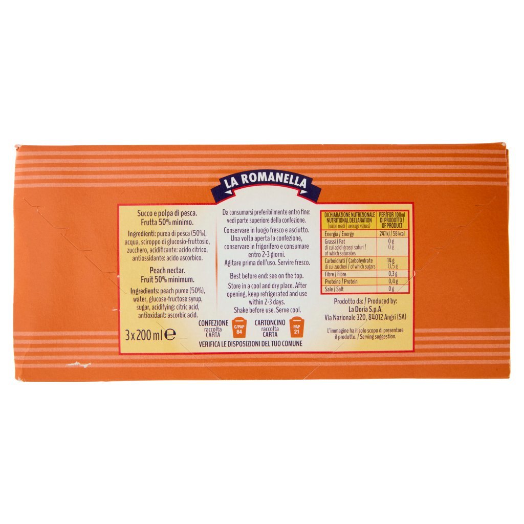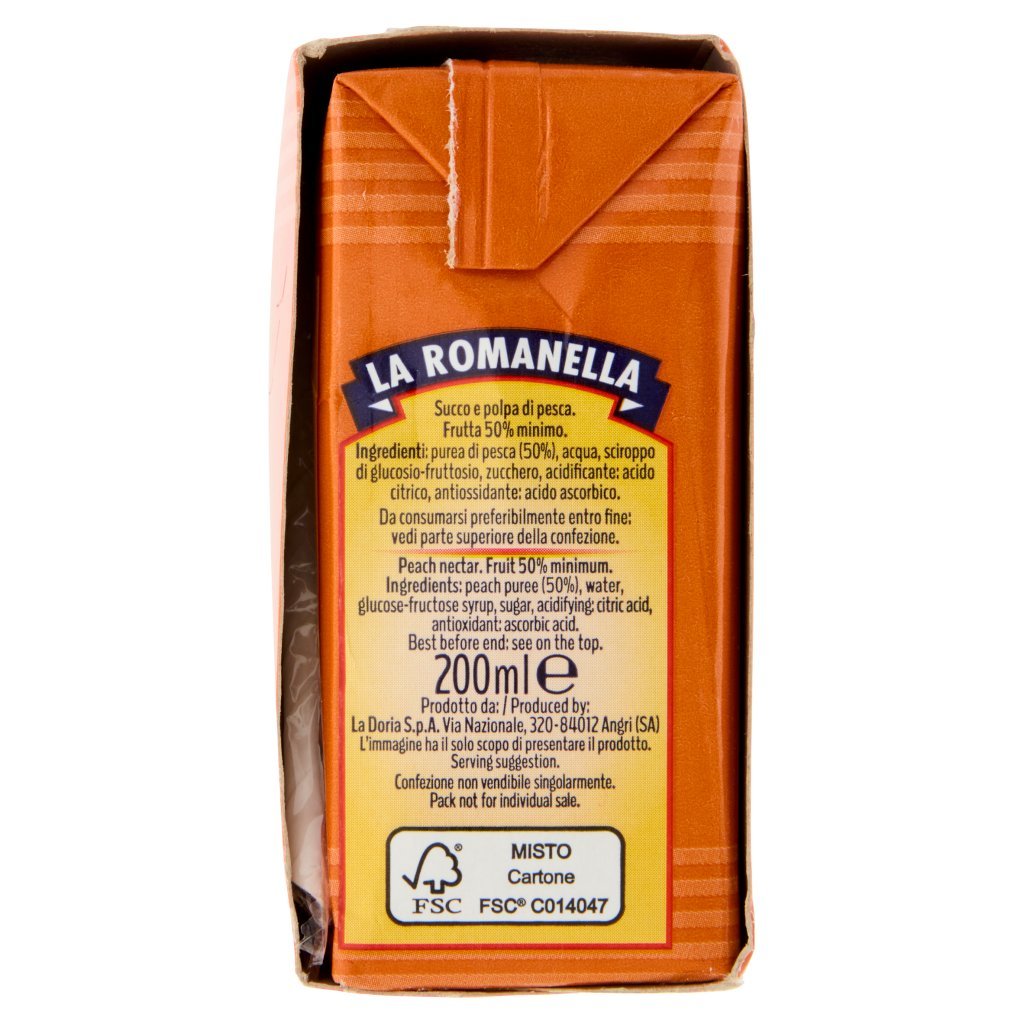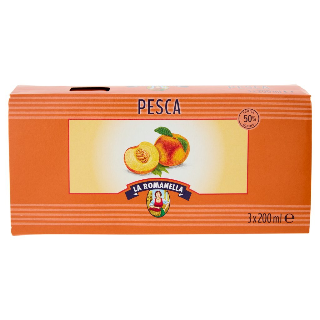 Purea di pesca (50%), Acqua, Sciroppo di glucosio-fruttosio, Zucchero, Acidificante: acido citrico, Antiossidante: acido ascorbico