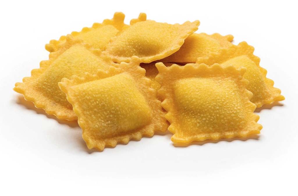 Pasta fresca all'uovo 54% semola di grano duro, farina di grano tenero tipo '00', uova 18% (9% sul totale), acqua. Ripieno 46%: carne di bovino e suino 29% (14% sul totale), pangrattato (farina di grano tenero tipo '0', acqua, sale), mortadella 10% (4% sul totale) (carne di suino, sale, spezie, aromi), formaggio grattugiato (latte, sale, caglio, conservante: lisozima proteina dell' uovo), riso, ortaggi misti in proporzione variabile (patate, carote, piselli, fagiolini, pomodoro, zucchine cavolfiore, sedano, fagioli borlotti, porro, rapa bianca, prezzemolo), burro, olio di semi di girasole, cipolla, sale, aromi, vino bianco (contiene solfiti), zucchero, aglio, malto, noce moscata, salvia, cannella, pepe.