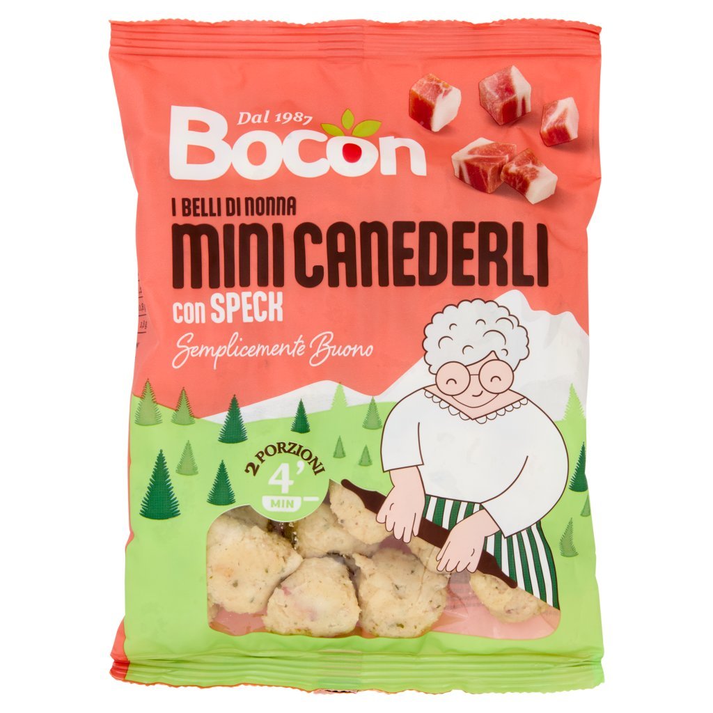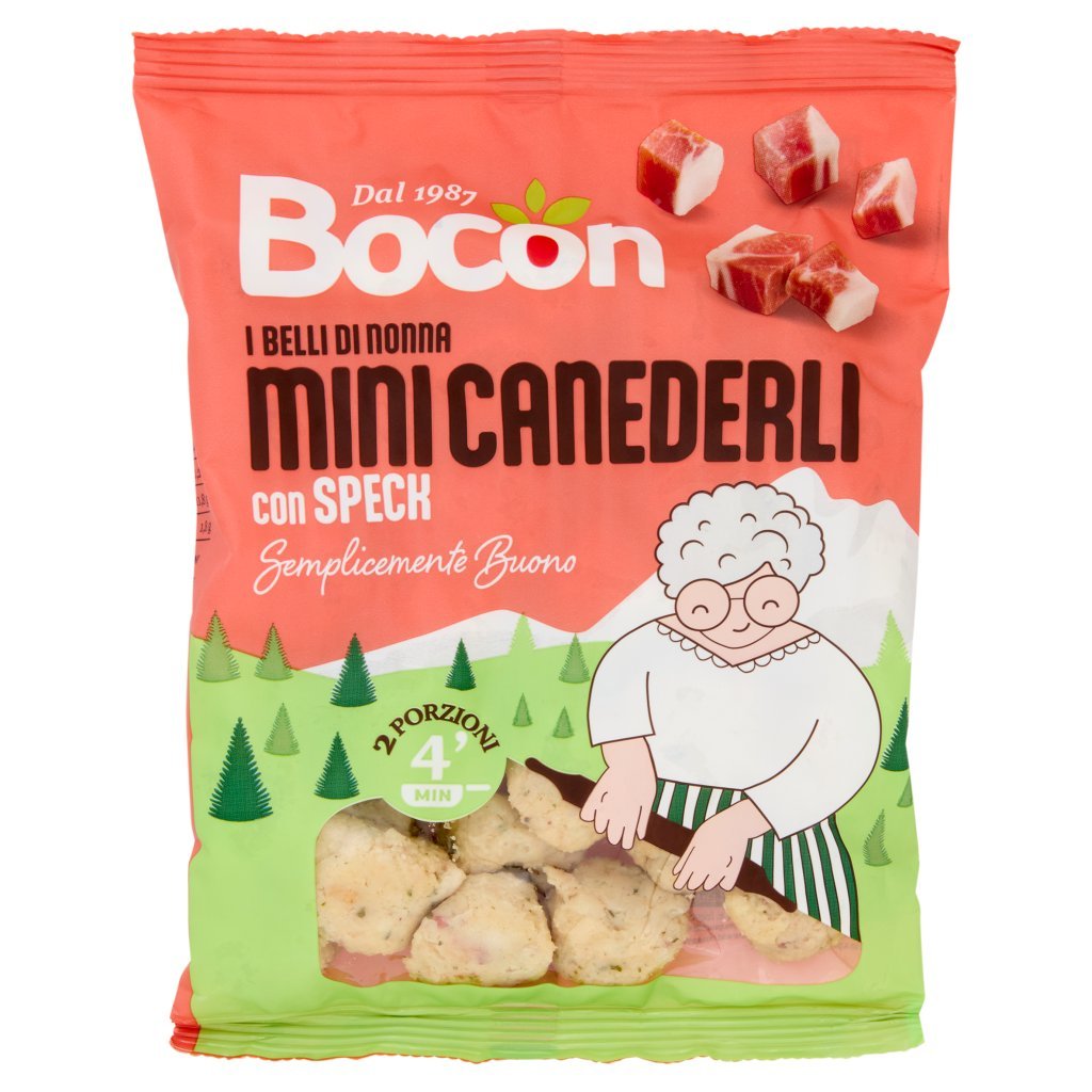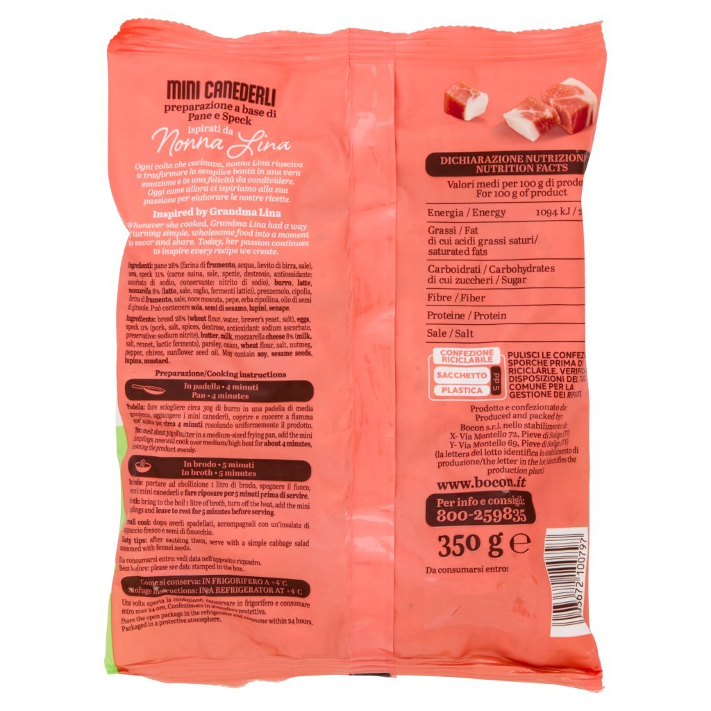 Pane 28% (farina di frumento, acqua, lievito di birra, sale), Uova, Speck 11% (carne suina, sale, spezie, destrosio, antiossidante: ascorbato di sodio, conservante: nitrito di sodio), Burro, Latte, Mozzarella 8% (latte, sale, caglio, fermenti lattici), Prezzemolo, Cipolla, Farina di frumento, Sale, Noce moscata, Pepe, Erba cipollina, Olio di semi di girasole, Può contenere soia, semi di sesamo, lupini, senape