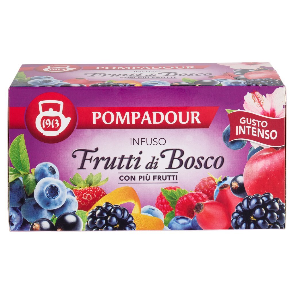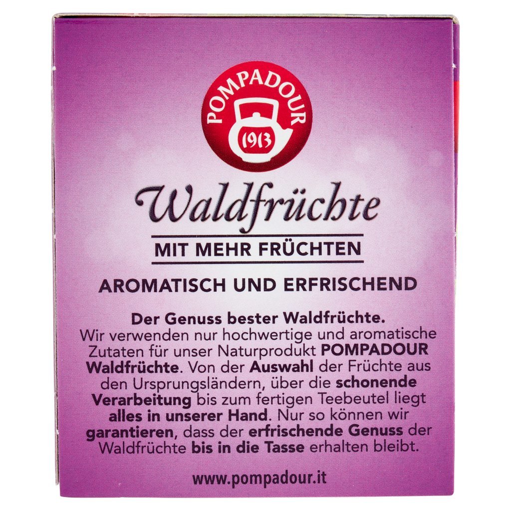 Ibisco, Frutti di bosco 24% (rosa canina, bacche di sambuco, ribes nero, lamponi, more, fragole, mirtilli neri), Mela, Scorza d'arancia, Aroma di frutti di bosco