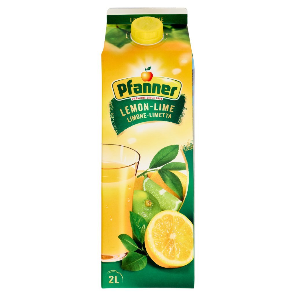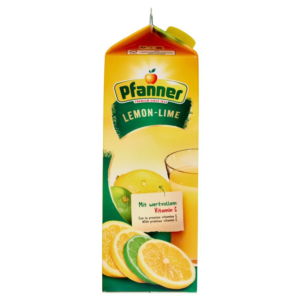 Acqua, Succo di più frutti da concentrato (limone 7%, arancia, limetta 4%, mela), Zucchero, Polpa di arancia, Aroma, Vitamina C, Colorante: beta-carotene, Senza glutine