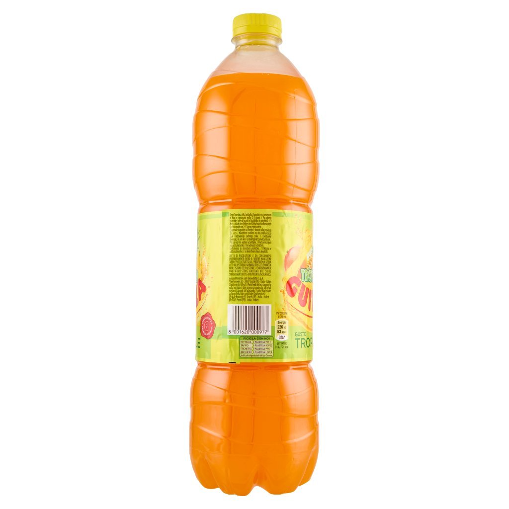 Acqua, Succhi di frutta da concentrato 12% (arancia, mango, ananas, banana), Zucchero, Acidificante: acido citrico, Aromi, Edulcoranti (ciclamato di sodio, sucralosio), Antiossidante: acido ascorbico, Sale, Stabilizzante: E1450, Colorante: beta carotene