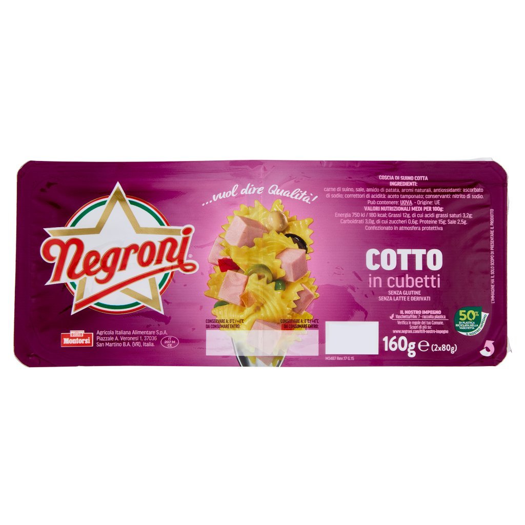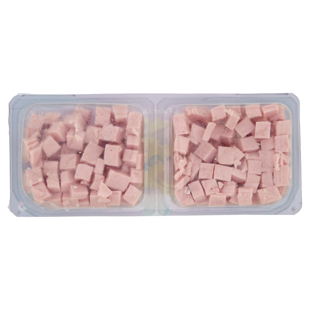 Carne di suino, Sale, Amido di patata, Aromi naturali, Antiossidanti: ascorbato di sodio, Correttori di acidità: aceto tamponato, conservanti: nitrito di sodio, Può contenere: uova