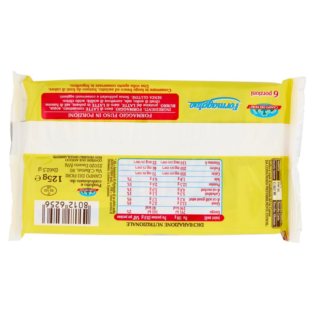 Formaggio, Siero di latte concentrato, Acqua, Burro, Proteine del latte, Siero di latte in polvere, Sali di fusione: citrati di sodio, Sale, Correttore di acidità: acido citrico, SENZA GLUTINE, Senza polifosfati e conservanti aggiunti