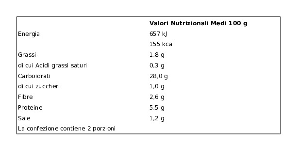 Farina di grano tenero tipo '0'*, Spinaci* 25%, Acqua, Uova*, Olio di semi di girasole*, Sale, Prodotto in uno stabilimento che utilizza anche latte, *Da agricoltura biologica