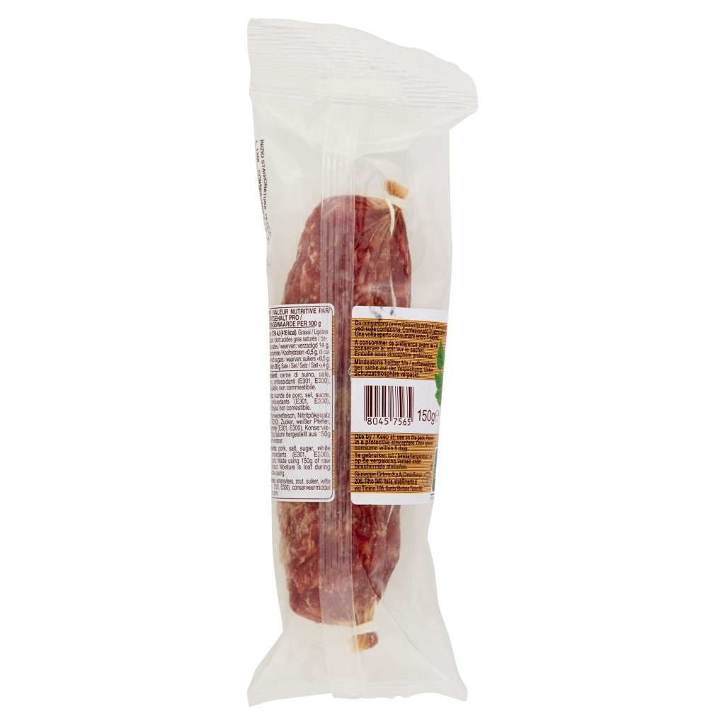 Carne di suino, Sale, Zucchero, Pepe bianco, Pepe nero, Antiossidanti (E301, E300), Conservanti (E252, E250), Aglio, Budello non commestibile