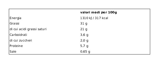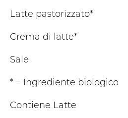 Latte pastorizzato*, Crema di latte*, Sale, * = Ingrediente biologico
