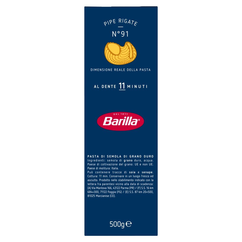 Semola di grano duro, Acqua, Può contenere tracce di soia e senape