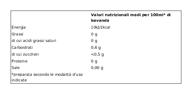 componente | Valori nutrizionali medi per 100ml* di bevanda |