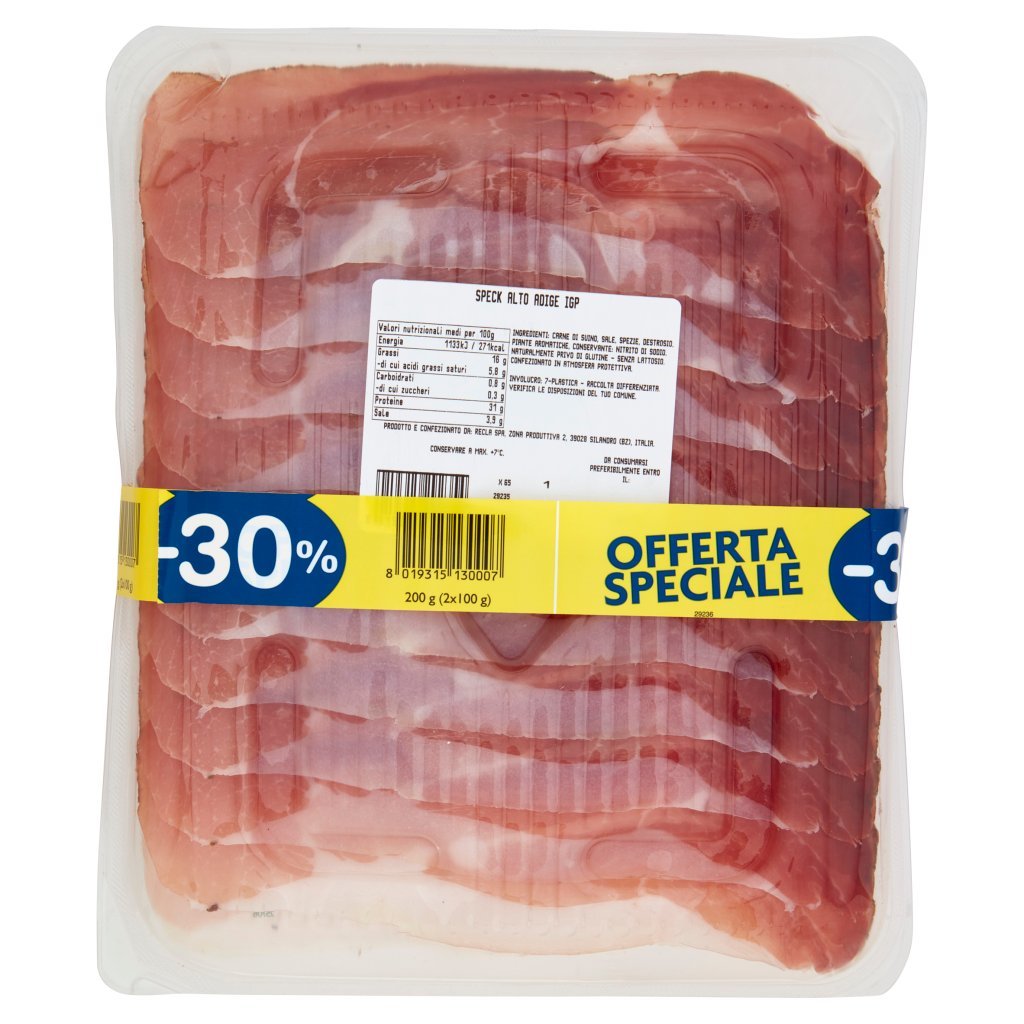 Carne di suino, Sale, Spezie, Destrosio, Piante aromatiche, Conservante: nitrito di sodio, Naturalmente privo di glutine, Senza lattosio