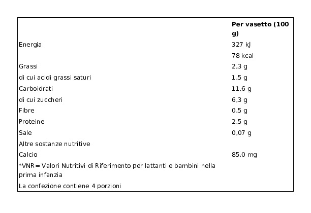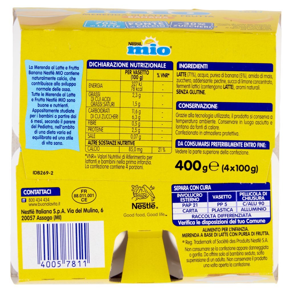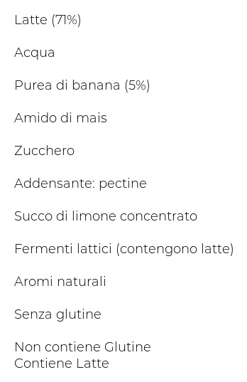 Latte (71%), Acqua, Purea di banana (5%), Amido di mais, Zucchero, Addensante: pectine, Succo di limone concentrato, Fermenti lattici (contengono latte), Aromi naturali, Senza glutine