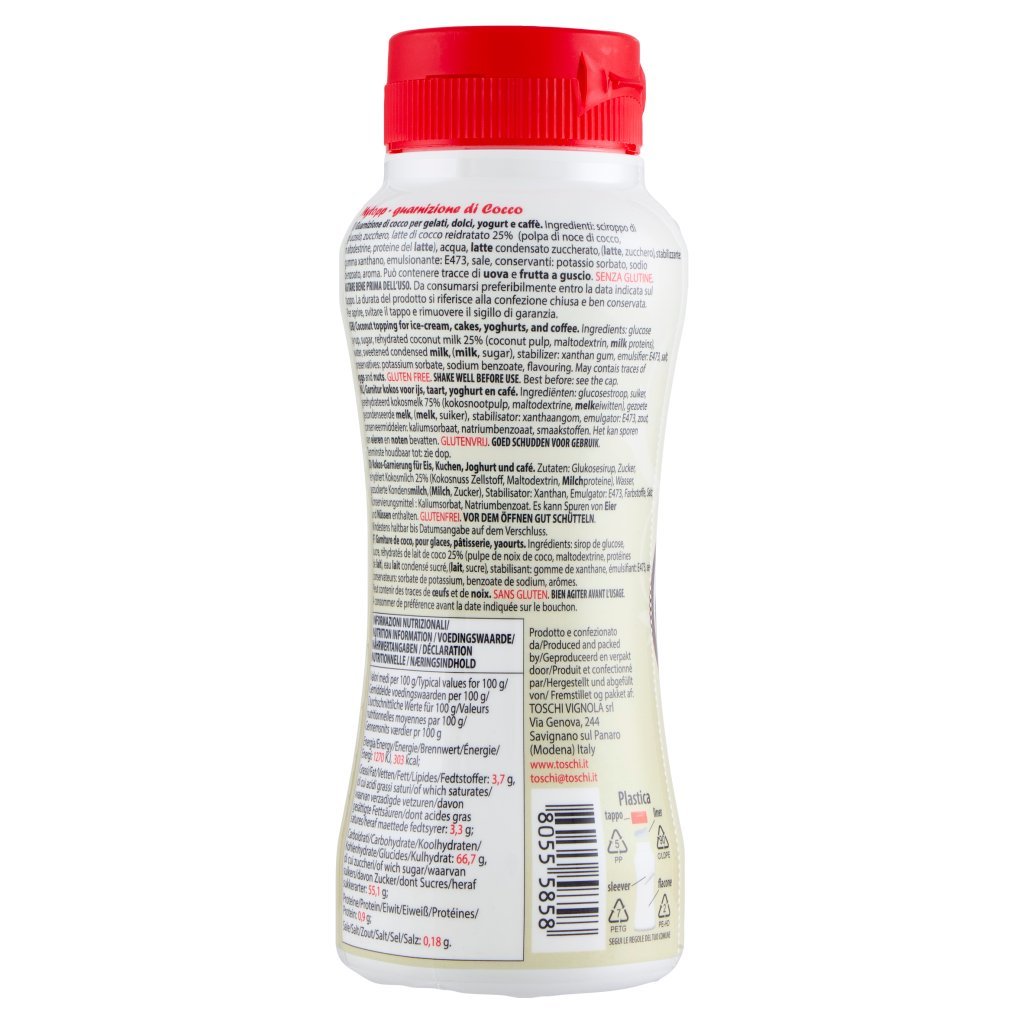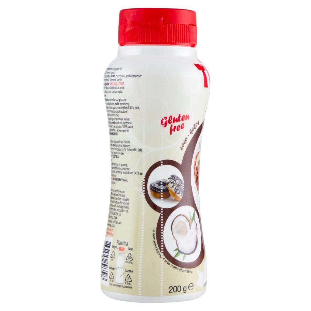 Sciroppo di glucosio, Zucchero, Latte di cocco reidratato 25% (polpa di noce di cocco, maltodestrine, proteine del latte), Acqua, Latte condensato zuccherato (latte, zucchero), Stabilizzante: gomma xanthano, Emulsionante: E473, Sale, Conservanti: potassio sorbato, sodio benzoato, Aroma, Può contenere tracce di uova e frutta a guscio, SENZA GLUTINE