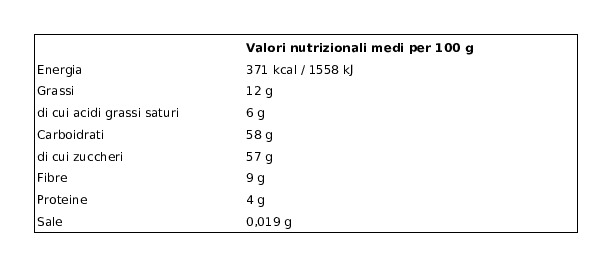 Fichi secchi (fichi, conservante: anidride solforosa E220), Gherigli di noce (25%), Può contenere tracce di altra frutta a guscio, latte