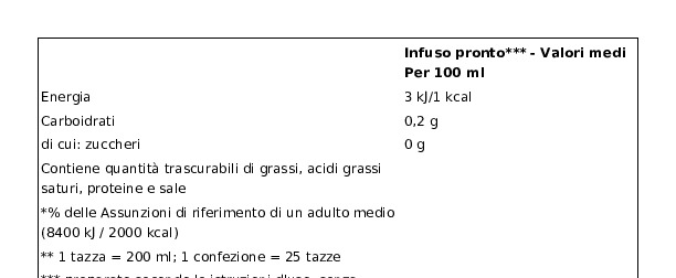 componente | Infuso pronto*** - Valori medi Per 100 ml |