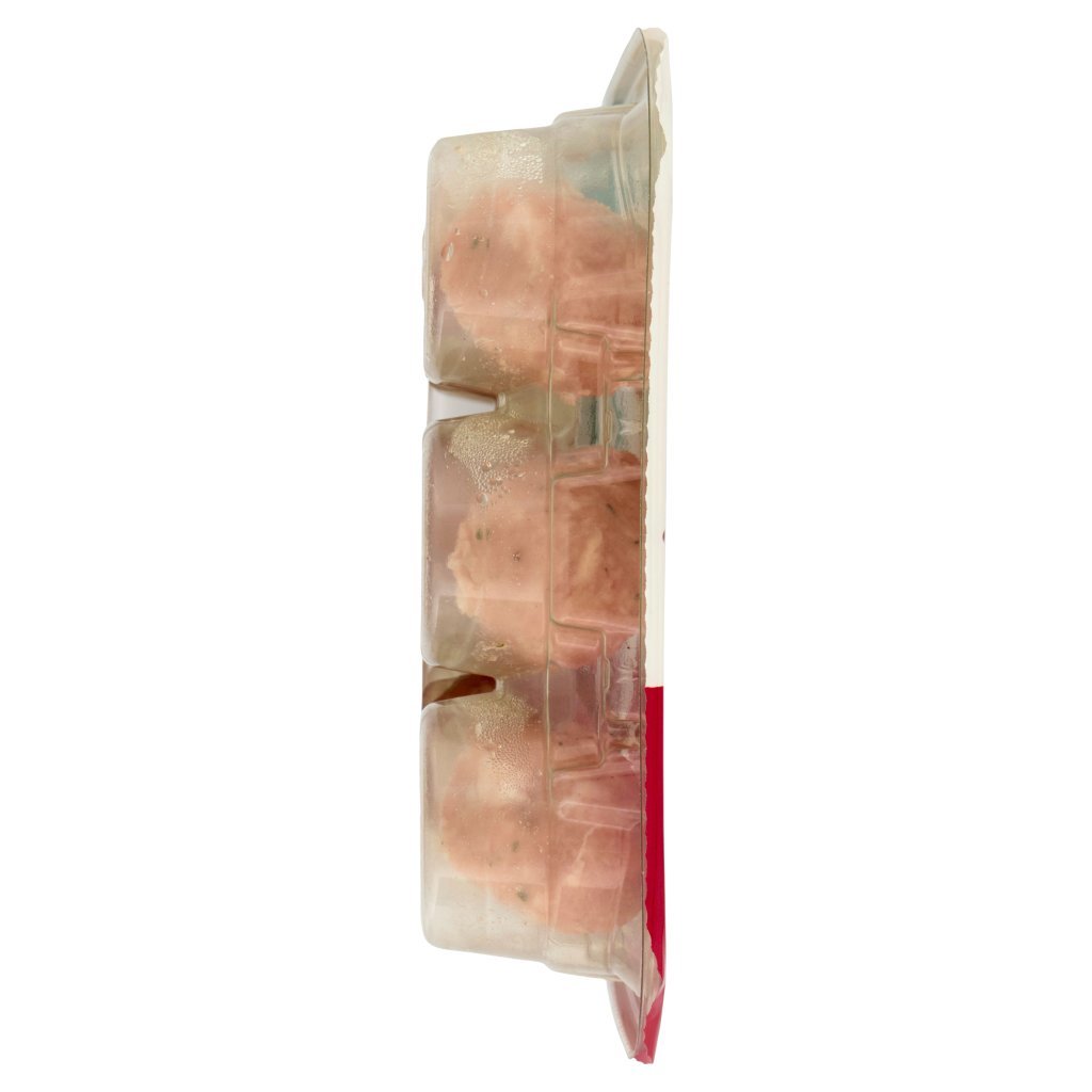 Carne di tacchino e pollo 67%, Carne di suino 15%, Acqua, Fibre vegetali (limone, lime, bambù, patata), Sale iodato (sale, iodato di potassio 0,007%), Amido di patata, Fiocchi di patate, Aromi naturali (latte), Uovo disidratato, Latte scremato in polvere, Estratto di lievito, Formaggio (latte), Cipolla disidratata, Spezie, Piante aromatiche, Sale, Olio di girasole, Prezzemolo 0,3%, Aromi, Antiossidante: ascorbato di sodio, Correttore di acidità: acetato di sodio, Può contenere senape