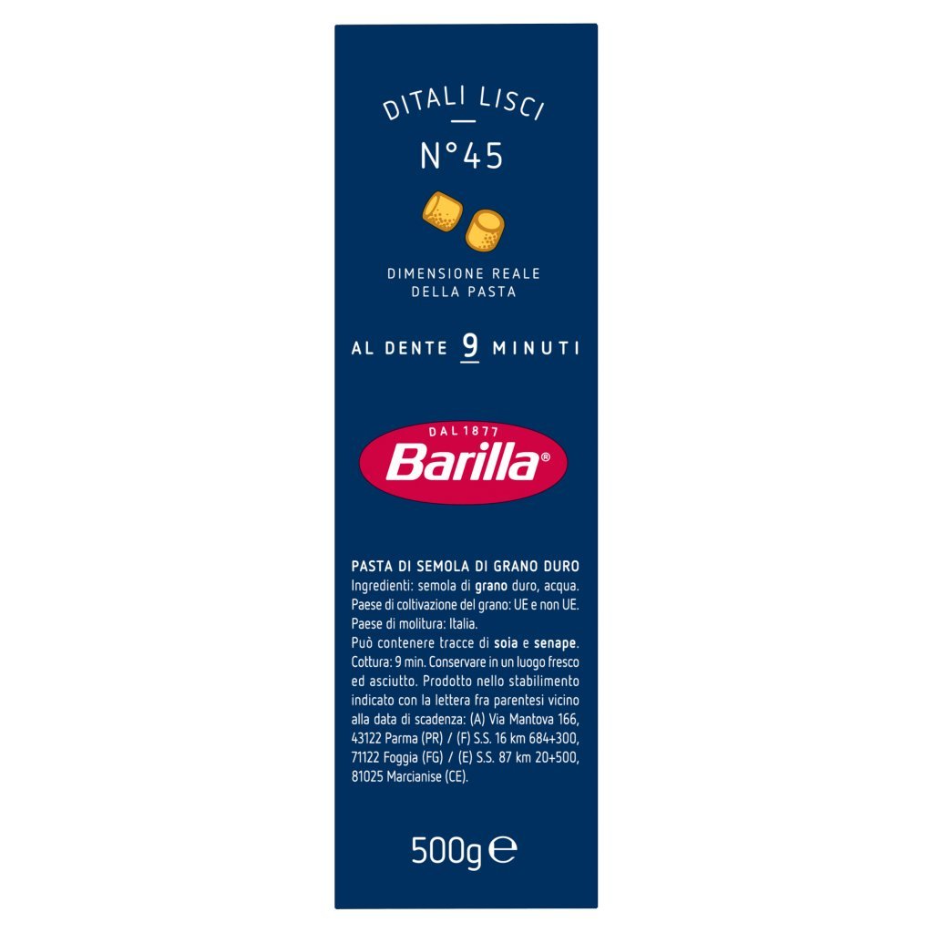 Semola di grano duro, Acqua, Può contenere tracce di soia e senape