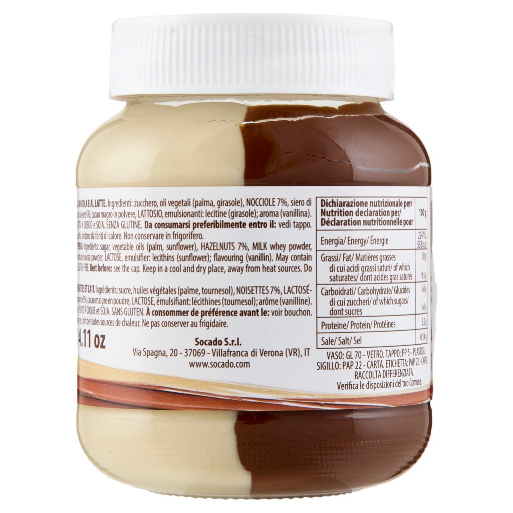 Zucchero, Oli vegetali (palma, girasole), Nocciole 7%, Siero di latte in polvere, Latte scremato in polvere 5%, Cacao magro in polvere, Lattosio, Emulsionanti: lecitine (girasole), Aroma (vanillina), Può contenere tracce di altra frutta a guscio e soia, Senza glutine