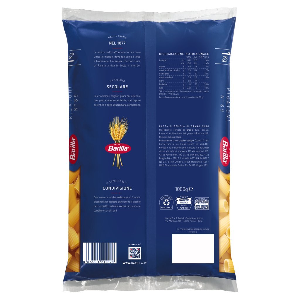 Barilla, Pasta Rigatoni N.89 Cello 1kg