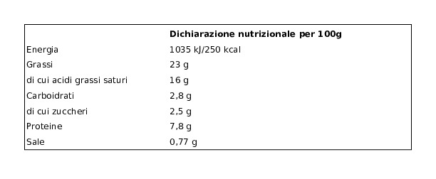 Latte pastorizzato, Crema di latte, Sale, Conservante: sorbato di potassio, Caglio