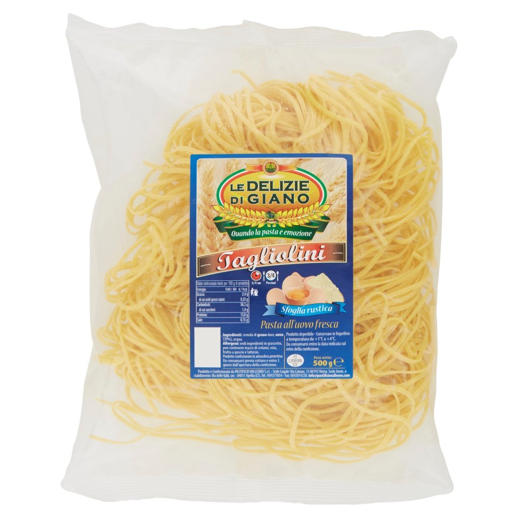 Semola di grano duro, Uova (20%), Acqua, Allergeni: vedi ingredienti in grassetto, può contenere tracce di sedano, soia, frutta a guscio e lattosio