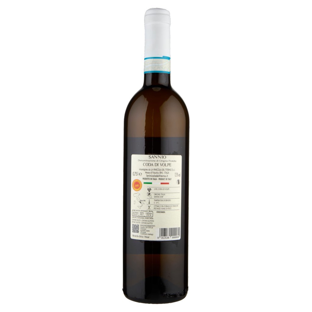 Uve bianche, Lievito (Saccaromyces cerevisiae), E224 - Metabisolfito di potassio, E220 - Anidride solforosa, E300 - Acido L-ascorbico, E414 - Gomma arabica, E466 - Gomma di cellulosa, Imbottigliato in atmosfera protetta