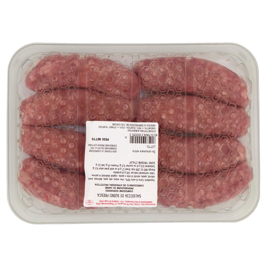 Carne di suino 92%, Vino, Acqua, Sale, Pepe, Destrosio, Aromi naturali, Spezie, Estratti di erbe e spezie, Vegetali disidratati in polvere